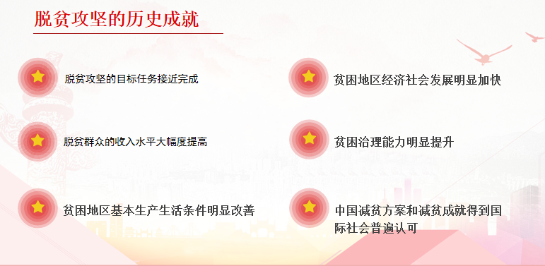 今年是全面建成小康社会的收官之年,经过党领导全国各族人民的艰苦奋斗,中国的脱贫事业得到了全世界的认可,创造了人类文明史上的奇迹。李振宇同志介绍了我国脱贫事业取得的历史成就,并结合视频的方式从数据、实例等角度全方位展示了脱贫工作的路途之艰辛和成果之丰硕。