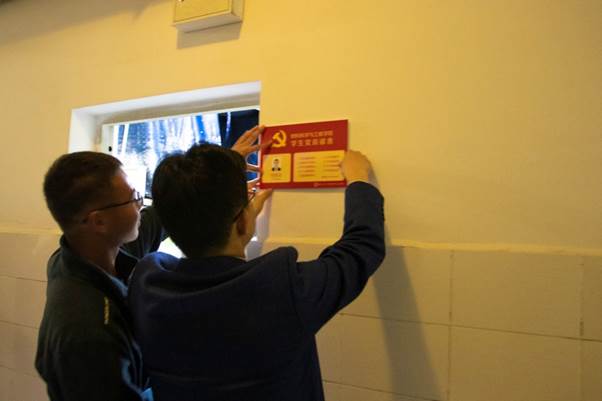 辅导员老师许欢、王誉静为学生党员宿舍挂牌