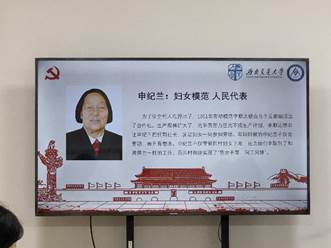 接着,支部成员集中学习不同历史时期共产党员为民族独立、人民解放、国家富强和人民幸福英勇奋斗的先进事迹。章春军同志分享了“为苏维埃新中国流尽最后一滴血”的革命烈士陈树湘掩护红军主力转移英勇牺牲的英雄事迹;许欢同志分享了妇女模范、人民代表申纪兰带领群众努力搞生产,为妇女争取同工同酬权利的故事;郑纪伟同志以“干惊天动地事、做隐姓埋名人”为主题,分享了直到生命最后时刻仍然在争分夺秒整理科研资料的林俊德为党和人民的国防事业奉献一生的故事;代宇欣同志分享了研究生毕业依然返乡,为脱贫贡献伟大事业献出宝贵生命的时代楷模黄文秀的故事。