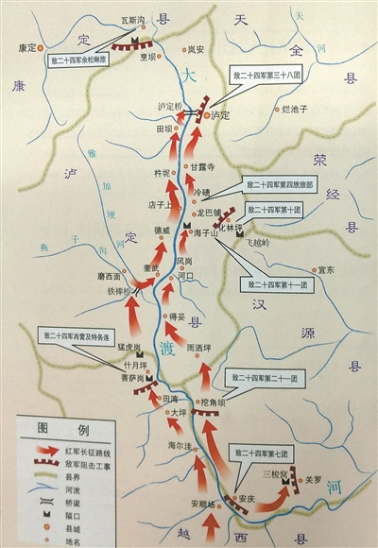 安顺急抢渡,大渡勇夺桥,两军夹江上,泸定决分晓。