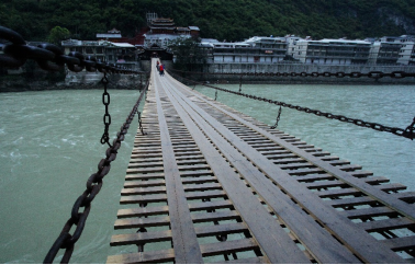 我常常会想“大渡桥横铁索寒”是怎样一种气魄与雄壮,直到我站在摇晃的铁索之上,俯视湍急的江水,处于索桥相对水流向上游横向移动的错觉和眩晕之中时,我才真的感受到当年飞夺泸定桥的22位勇士是何等的无畏与英勇,才知晓对于革命理想的坚定与信仰是一种何等的力量。