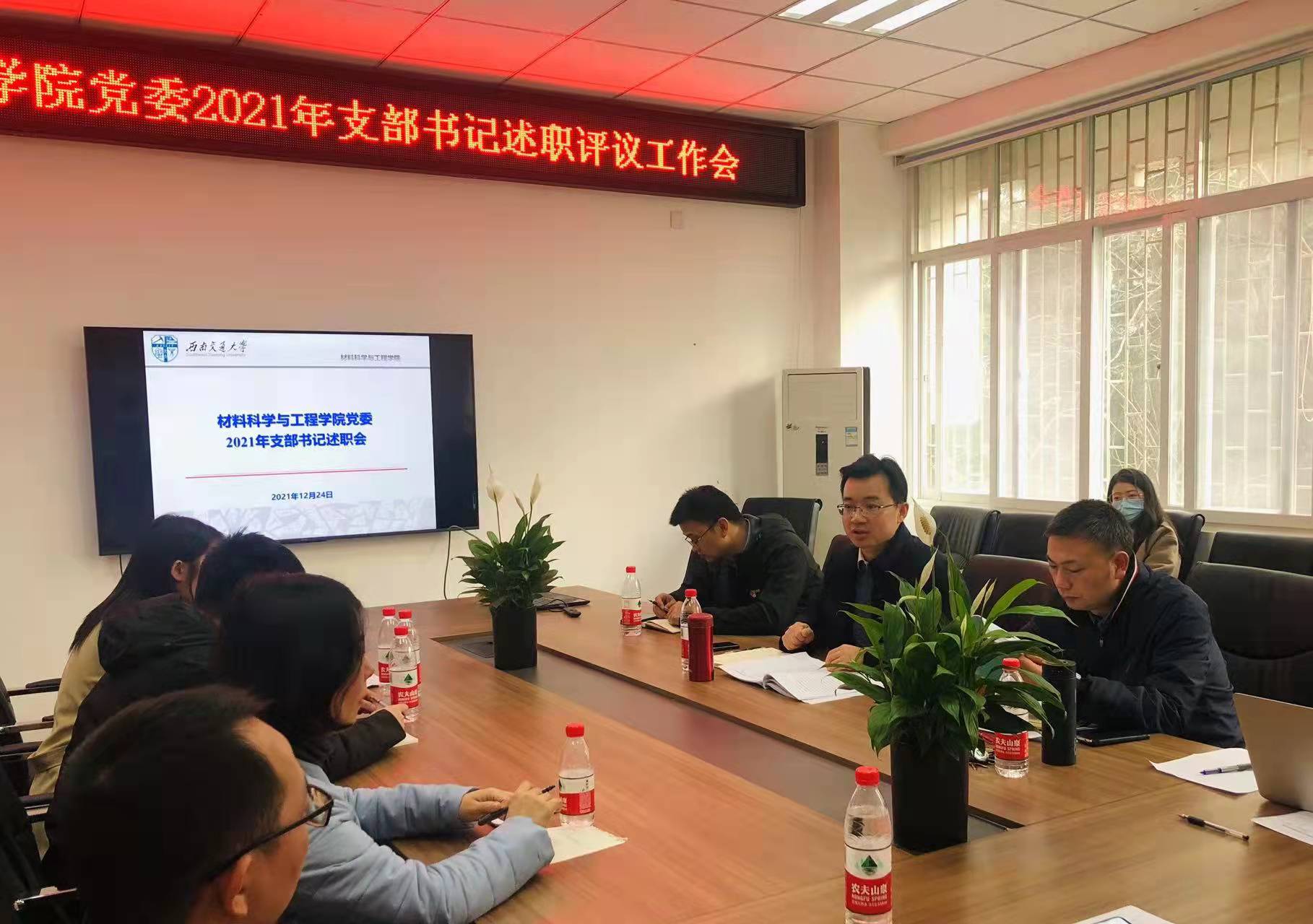 陈勇书记结合各支部的述职情况进行总结。陈书记对各支部一年来的工作予以了肯定,并对下一步工作提出要求,一是要高度重视党的十九届六中全会精神宣贯,持续开展好党史学习教育;二是要求各支部书记要切实履职,有责任担当,配合学院党委做好支部建设,提升战斗堡垒作用;三是希望通过党支部书记岗位锻炼,提高综合能力素养。