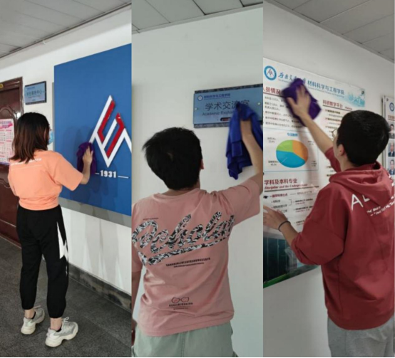 随后,同学们在思源厅用毛巾擦拭橱窗中以及墙壁上的灰尘。部分同学表示第一次来到思源厅,在劳动的同时也了解了关于学院的许多知识,很开心获得这一次劳动的机会。劳动本身令人快乐,劳动同时也能收获意想不到的快乐。珍惜每一次劳动的机会,认真对待每一次劳动。