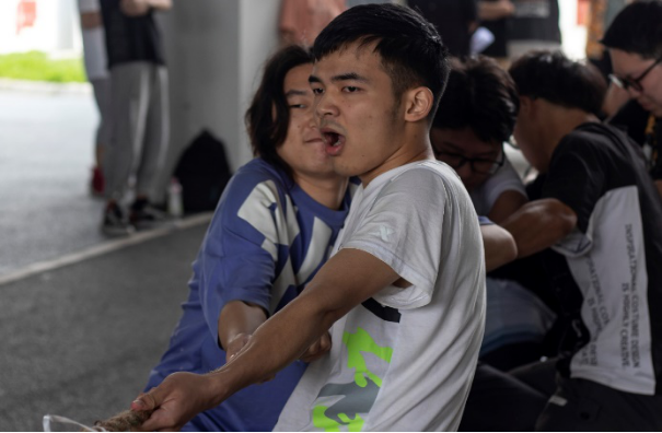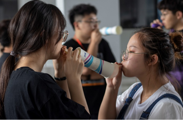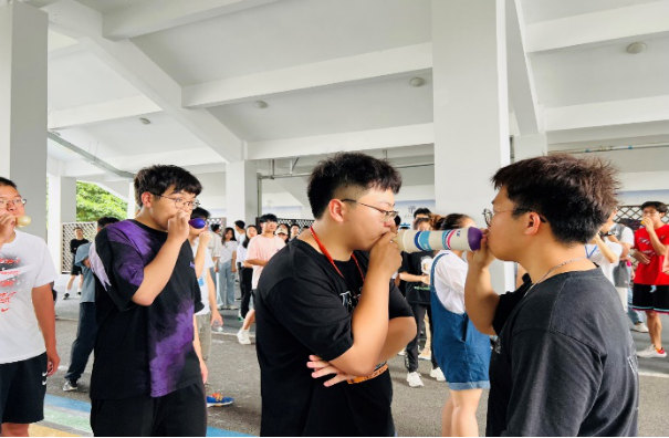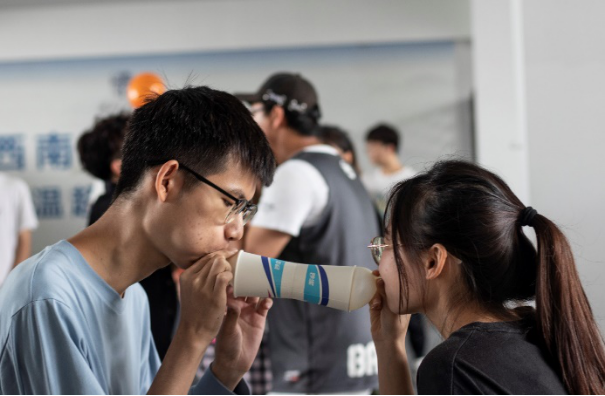 为帮助同学们舒缓拔河的紧张氛围,各支队伍进行了既愉悦放松又考验团队精神的气球传递纸杯”小游戏。两队一组轮番比拼,比赛中笑点频频、精彩不断,找到窍门的同学们传递效率非常高,很快便遥遥领先。有些同学四目相对,难免笑场,大家都收获了满满的欢乐。