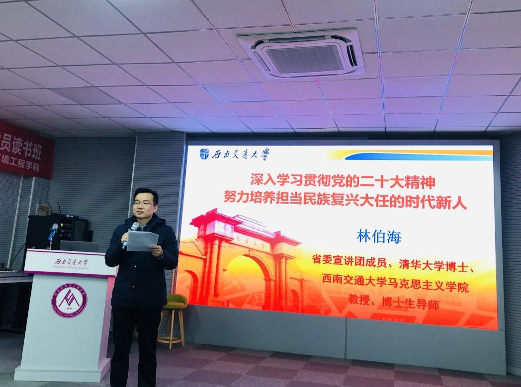 2022122日下午,大发在线体育投注平台 党委在九里校区J3324会议室举行党的二十大精神专题学习。四川省宣讲团成员、著名专家、学校马克思主义学院原院长林伯海教授应邀作《深入学习贯彻党的二十大精神 努力培养担当民族复兴大任的时代新人》专题报告。学院党委书记陈勇、院长朱旻昊以及九里校区师生党员共计200余人参加,陈勇主持。