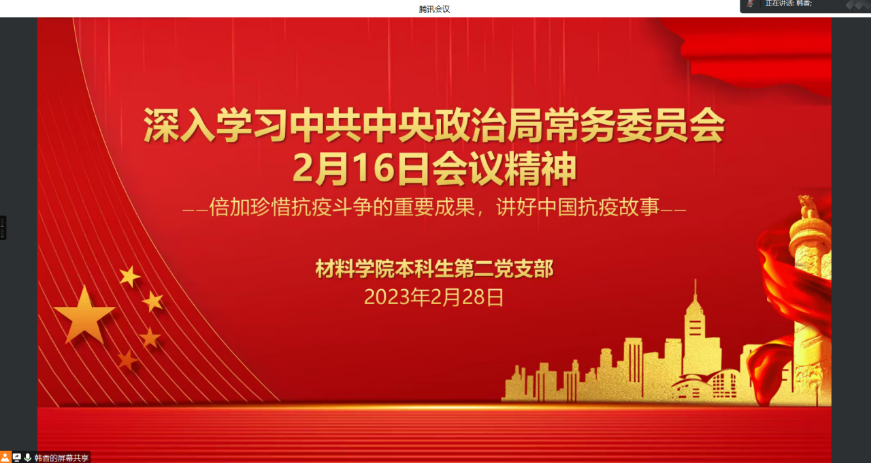 2023年2月28日晚,大发在线体育投注平台 本科生第二党支部通过线上组织开展了“中共中央政治局常务委员会2月16日会议精神”专题学习。会上,全体同志共同观看了此次会议精神的专题报道。