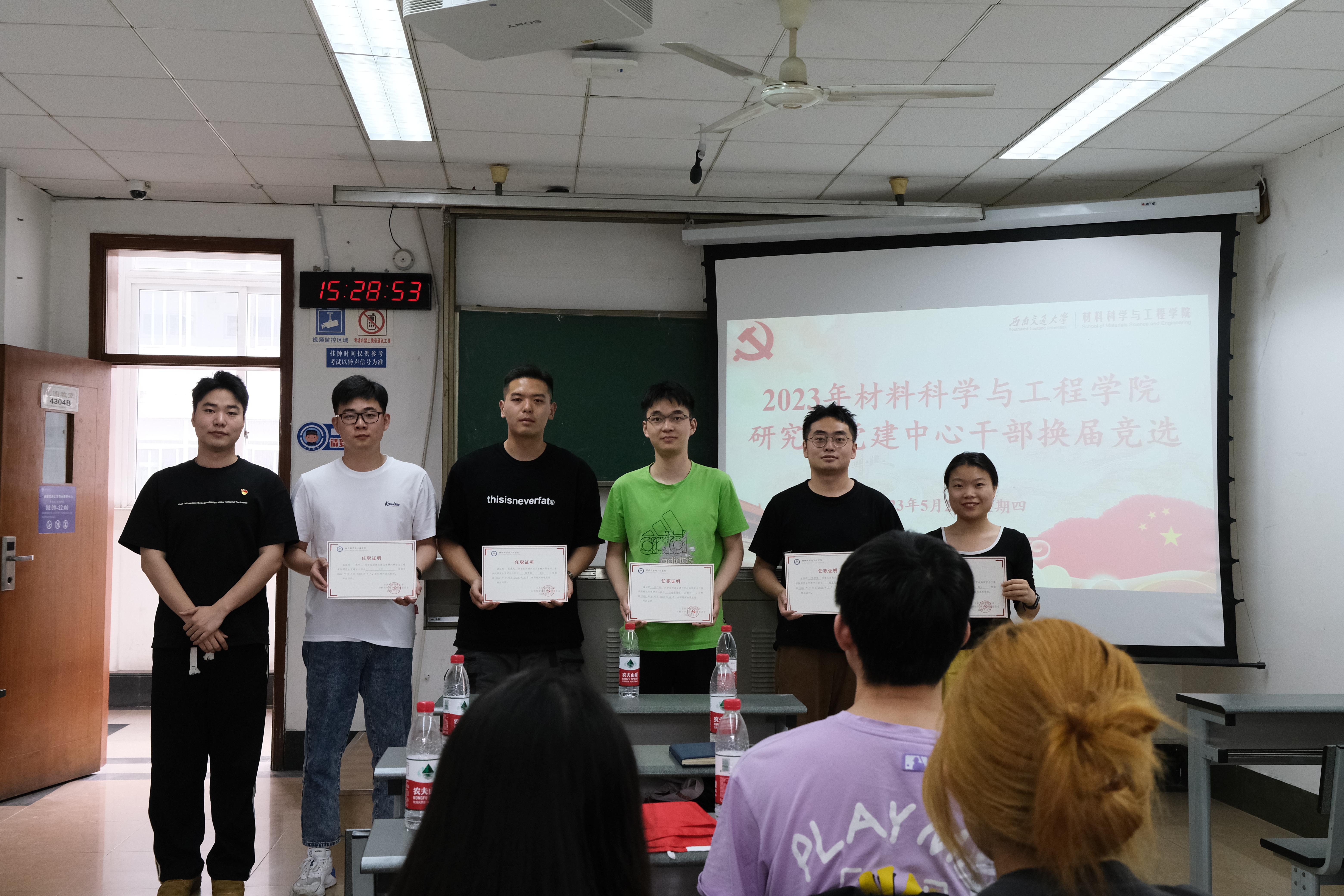 接着开展了研究生党建中心换届竞选,六位候选人分别上台答辩,展现自身优势并对未来党建工作提出设想,表达了自己愿意为组织全心奉献的工作态度。全体干部对候选人的竞选汇报进行提问考察,针对思想政治素养、业务能力、组织能力等方面进行全面评估,以确保公平择优。