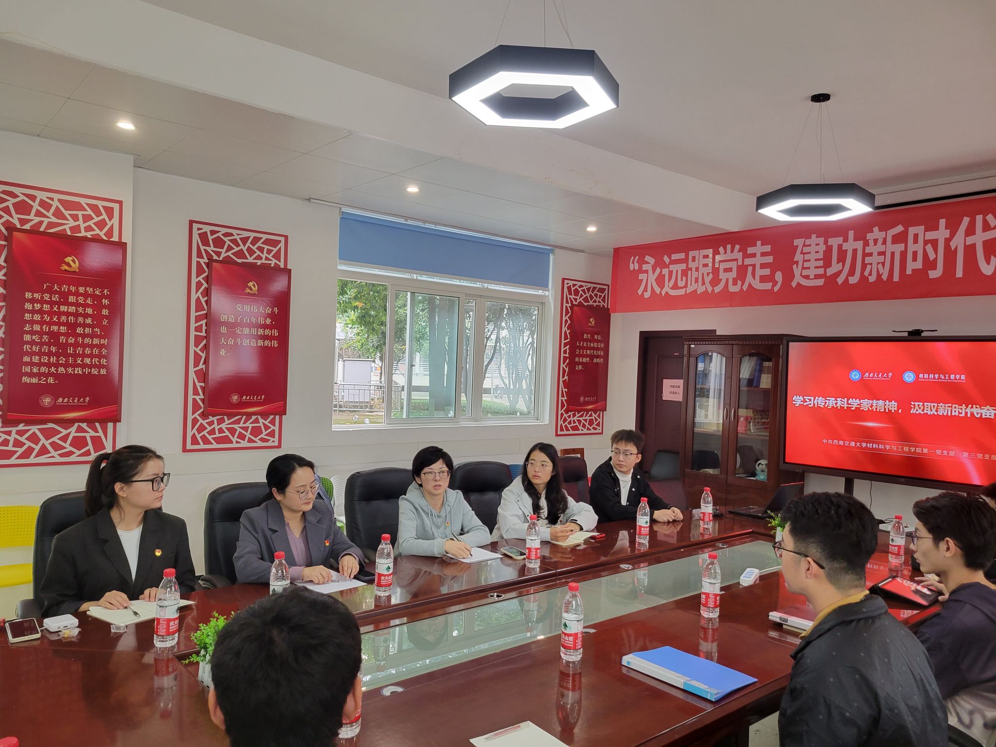 本科生第一、三党支部在2023年10月25日下午于犀浦校区天佑斋3栋红色驿站组织开展“学习传承科学家精神,汲取新时代奋进伟力”主题党日示范活动。学院党委副书记熊钰,本科生第一、三党支部指导老师王誉静、许欢、熊心怡以及学生党员代表、入党积极分子代表参加。本次活动由本科生第一党支部书记刘嘉腾主持。