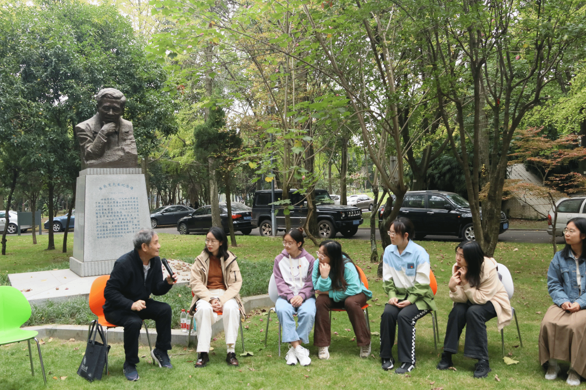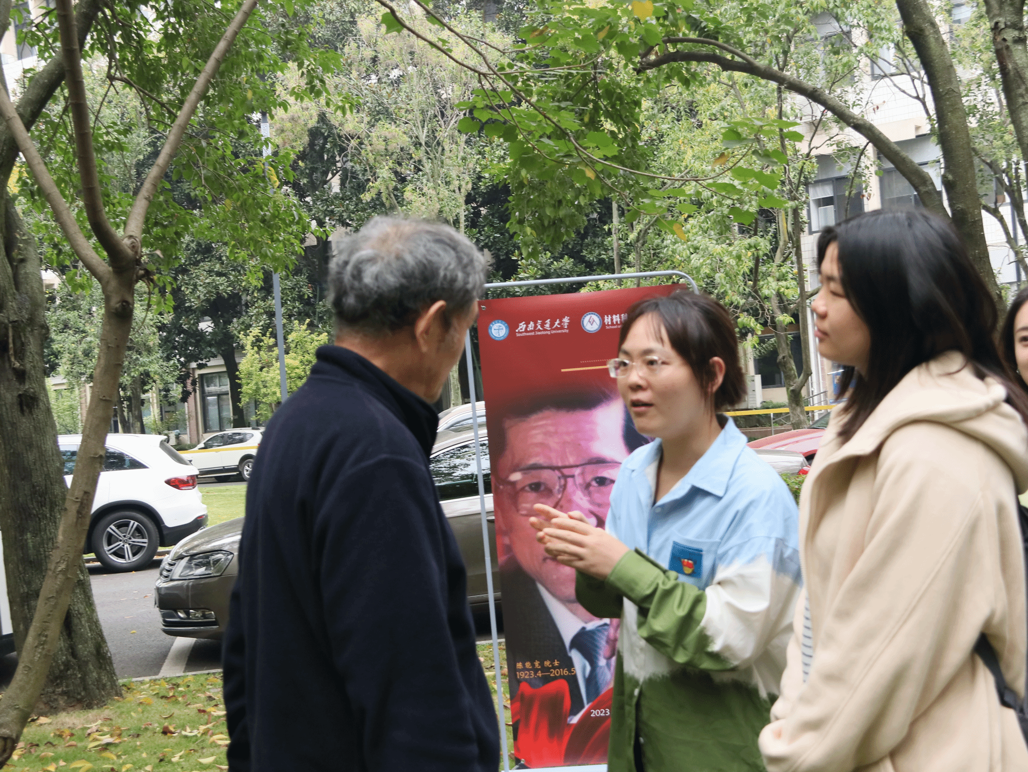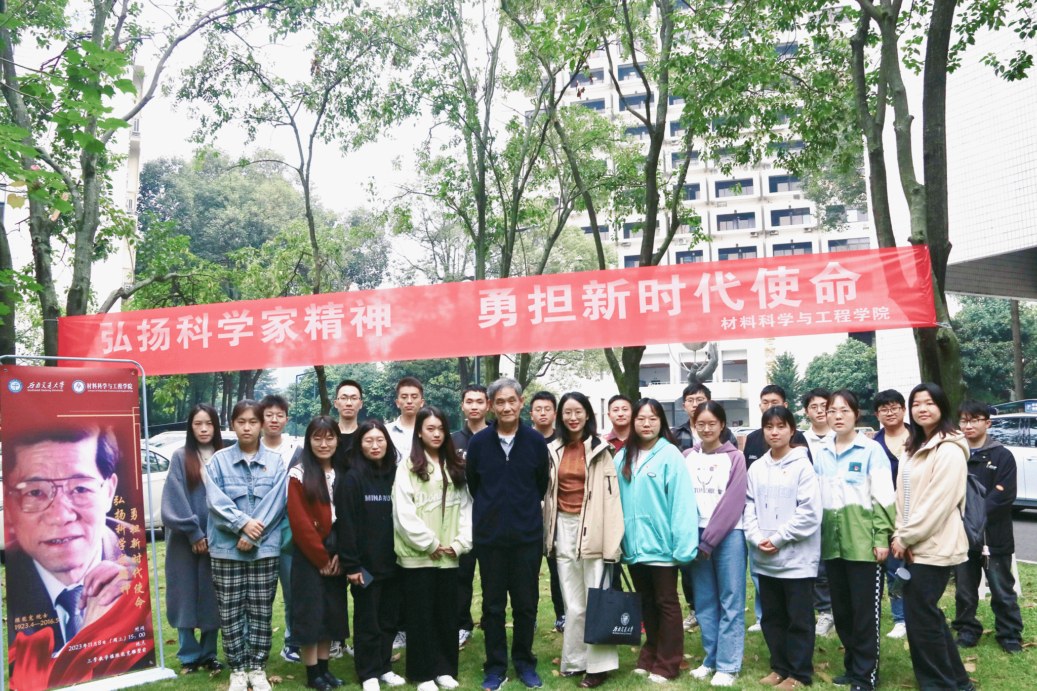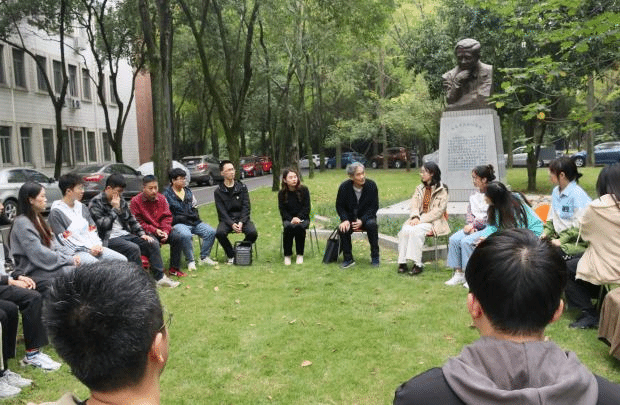 研究生第八、第十二党支部一同在九里校区陈能宽院士雕塑前组织开展了“弘扬科学家精神,勇担新时代使命”主题党日活动,本次党日活动特别邀请了校史专家、2021年度“最美交大人”梁锦唐老师主讲,辅导员罗丹、邓文婷参与本次活动,邓文婷主持。