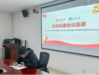 硕3026党支部与西南交通大学研究生第七党支部书记共同签署《支部结对共建协议书》。协议强调,双方党支部要定期组织联合学习活动,深入学习党的理论和政策,提高党员的政治素养和理论水平,鼓励党员之间开展学术交流与合作,分享科研经验,推动学术成果的转化与应用。同时要加强开展社会实践活动,服务学校师生,锻炼党员的实践能力,增强社会责任感,定期举行文体活动,丰富党员的课外生活,加强党支部之间的团结与友谊。