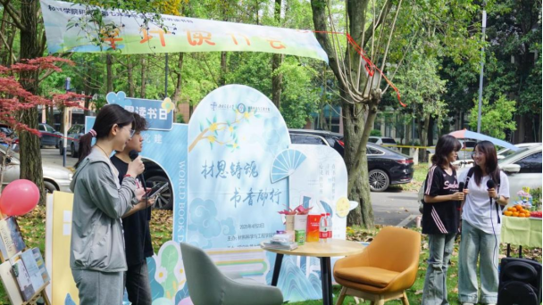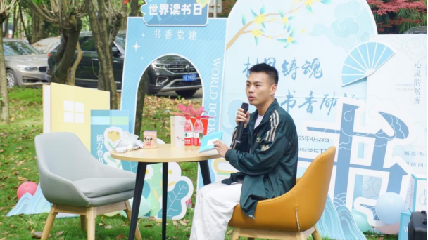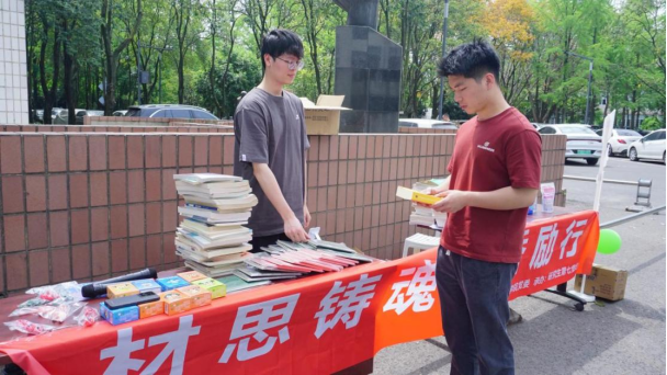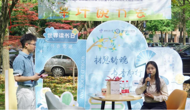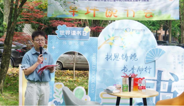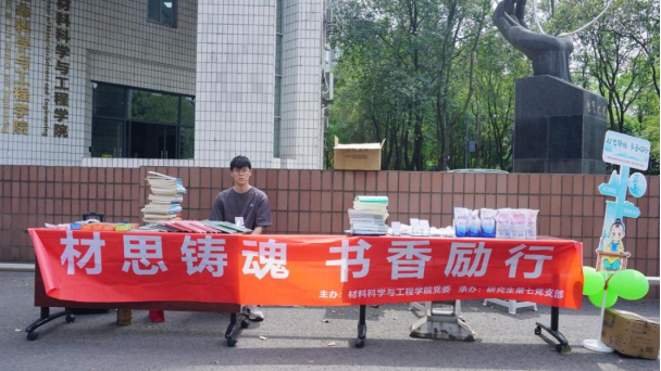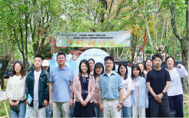 研究生第七党支部于2025年世界读书日之际,在九里校区三号教学楼陈能宽院士纪念雕塑草坪,开展“材思铸魂·书香励行”主题党日活动暨开展深入贯彻中央八项规定精神学习教育知识竞答比赛。本次活动以草坪读书会、知识竞答和旧书回收换礼的"双线融合"形式同时开展。上午10点,草坪读书会如期开始。学院党委书记沈哲出席本次活动,为本次活动揭幕,并与支部党员交流心得共沐书香。