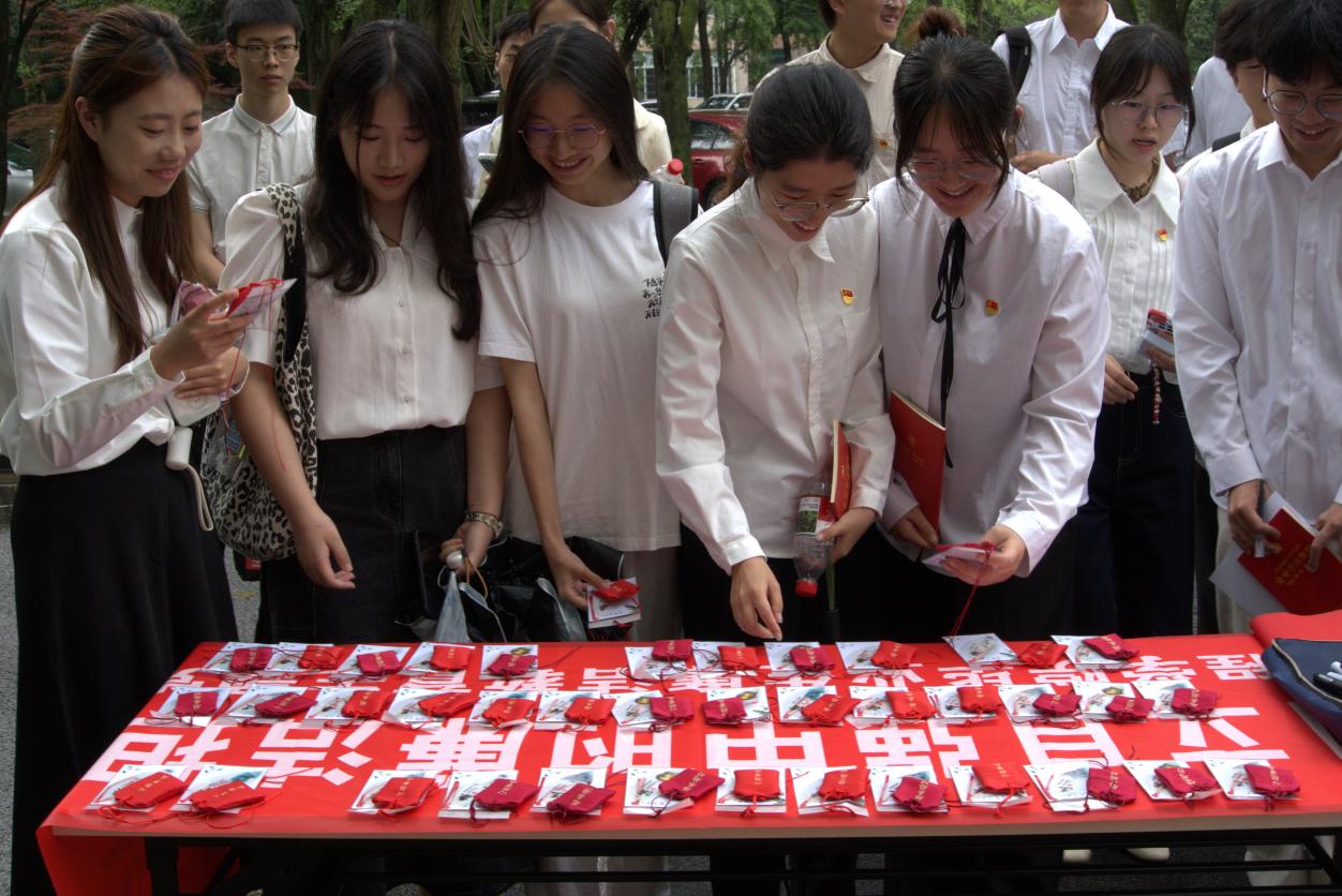 活动最后举行了别开生面的“真材淬‘廉’”主题教育仪式。学院为每位党员准备了寓意深远的"廉洁三件套":象征高洁清廉的莲花种子、绣有"心想事成"的红色荷包,以及印有“行廉洁之事,做廉洁之人”的叶脉书签。全体党员在横幅上郑重签名,并合影留念。