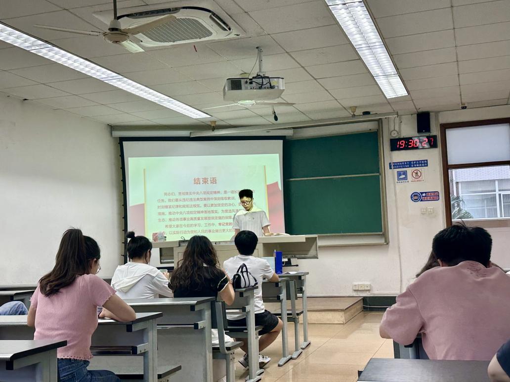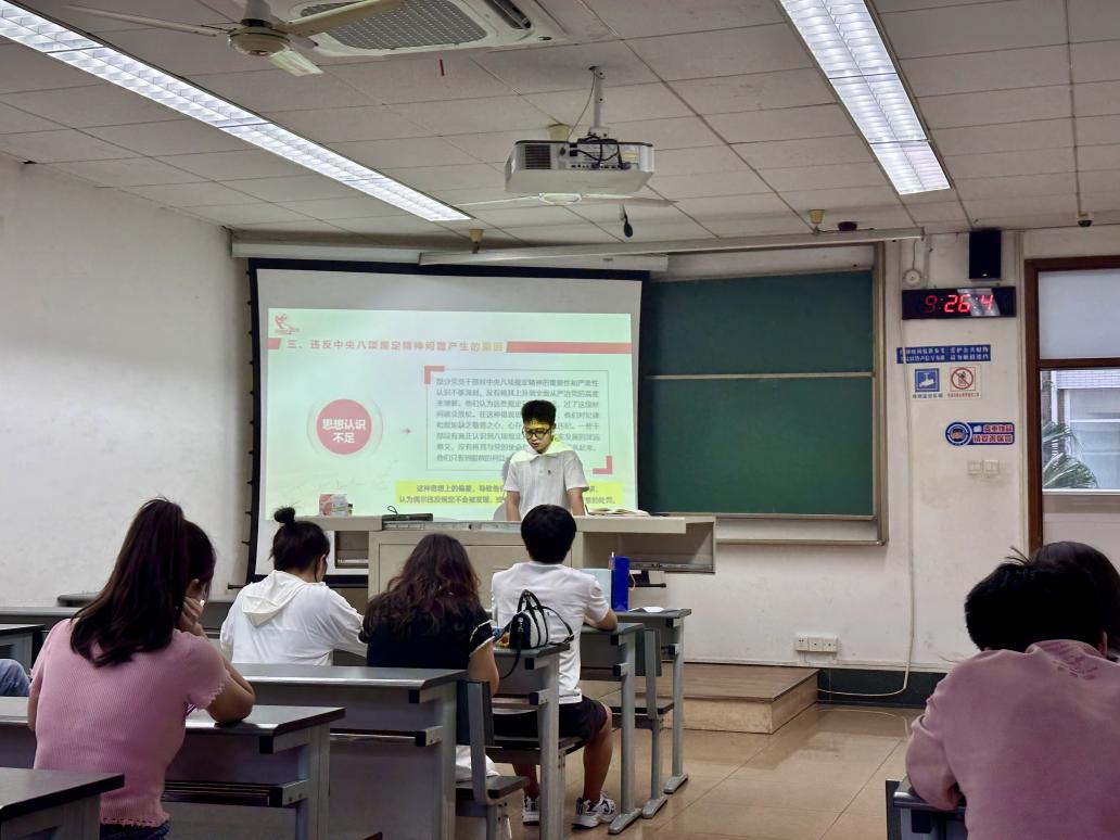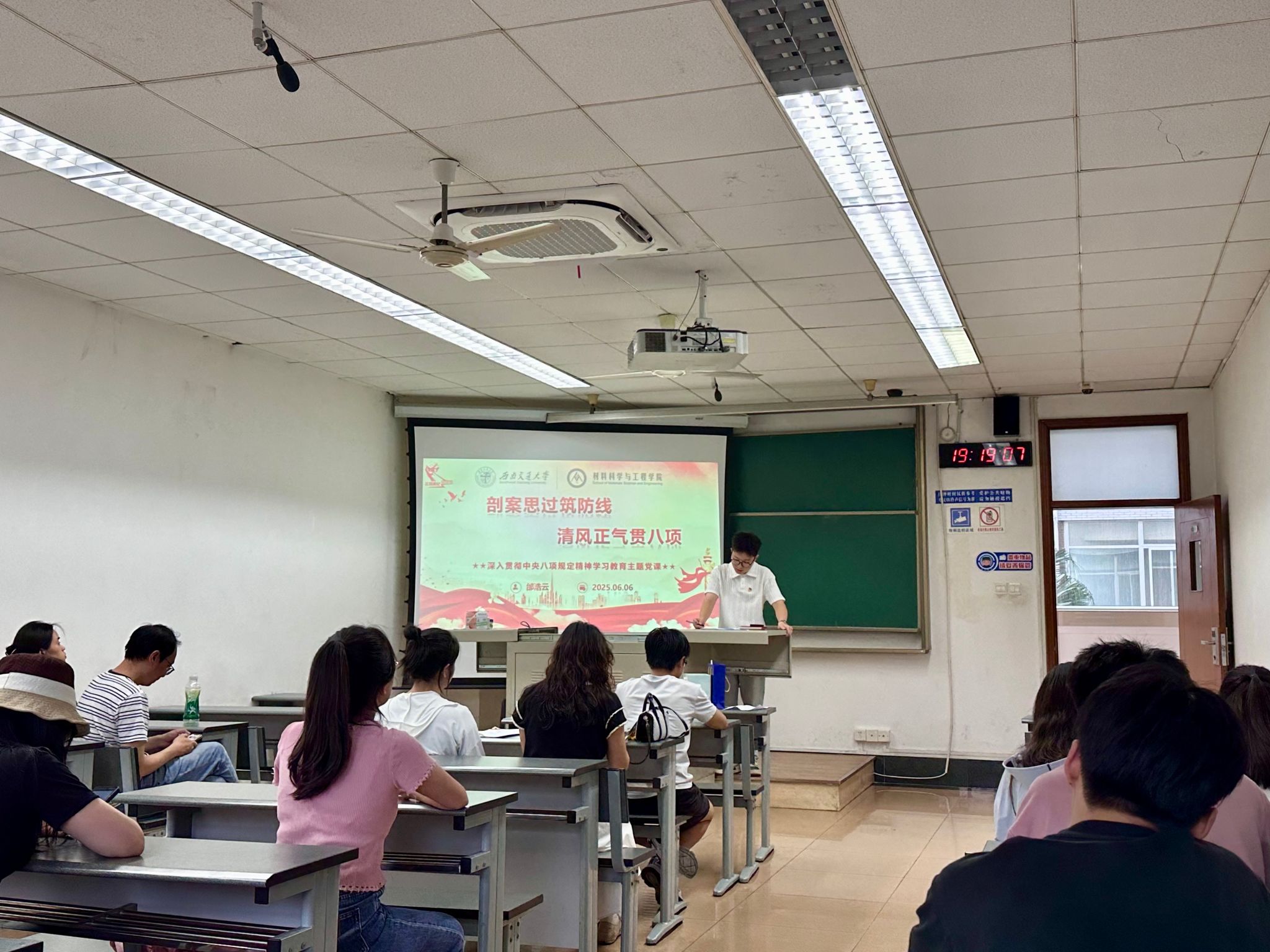 随后,通过剖析近年来高校系统违反中央八项规定精神的典型案例,如科研经费违规使用、学术不端、享乐主义回潮等,邰浩云深入分析问题产生的思想根源,强调理想信念动摇、纪律意识淡薄、制度执行缺位是主要诱因。针对研究生党员特点,他提出 "三个融入" 要求:将纪律要求融入科研诚信,坚决抵制学术不端;将作风建设融入日常行为,杜绝形式主义、官僚主义;将宗旨意识融入实践行动,在服务同学中彰显党员担当。他特别指出,毕业生党员要站好最后一班岗,在毕业离校期间严守纪律规矩,做好文明离校的表率。