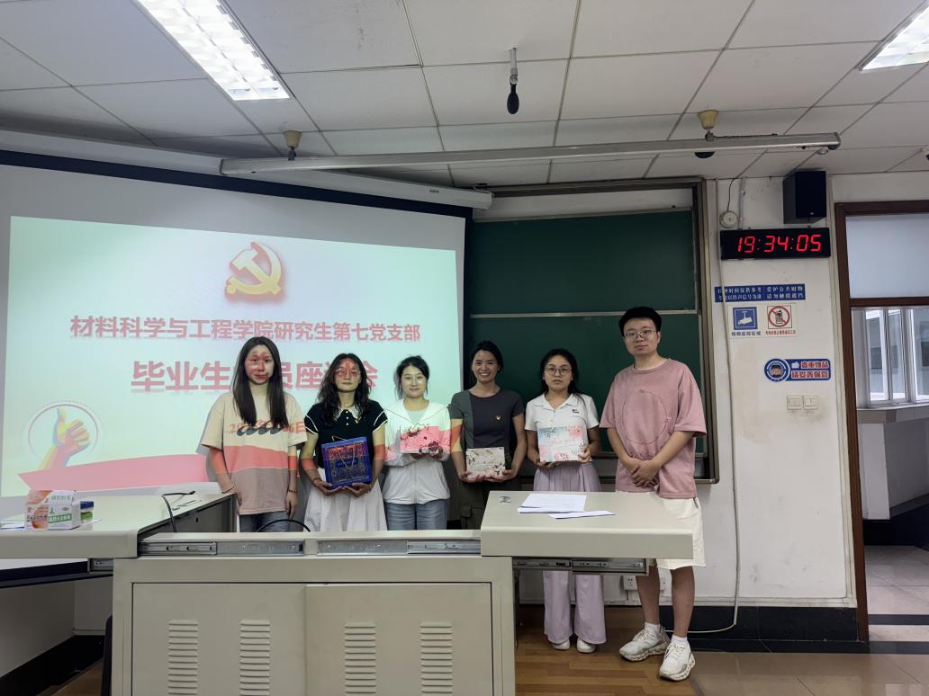 支委成员为毕业生党员赠送纪念礼物,叮嘱大家 "离校不离党,退伍不褪色",在新岗位上继续擦亮党员底色。